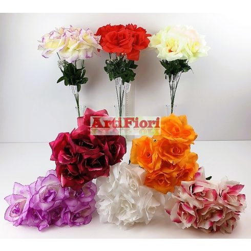 Rózsa nyílott nagyvirágos selyemvirág szál rezgővel 8 féle színben vegyesen