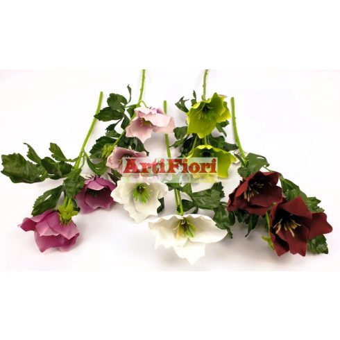 Hunyor szál 2 virággal bordó-mályva-zöld-rózsaszín színben