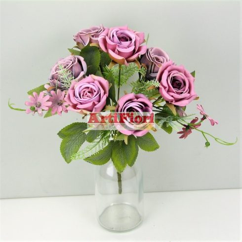 Rózsa selyemvirág csokor margarétával 6 féle színben vegyesen