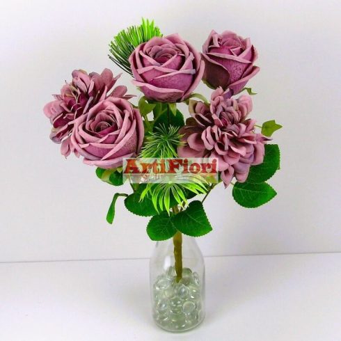 Rózsa dália vegyes selyemvirág csokor 6 féle színben VEGYESEN vagy KRÉM színben